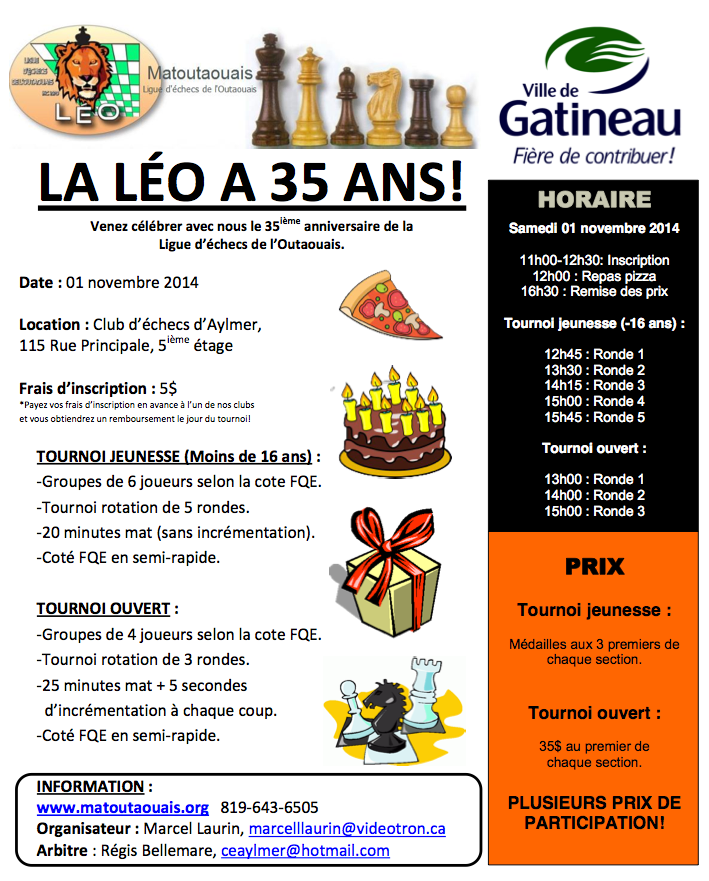 Info : Marcel Laurin, arbitre du Championnat Fermé de l’Outaouais (819-643-6505 ou marcelllaurin @ videotron.ca