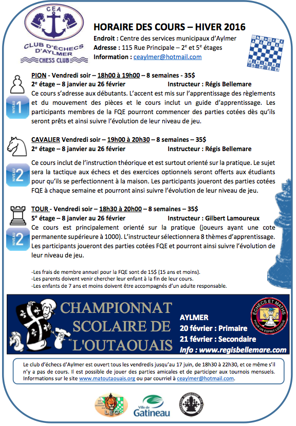 Le tournoi se poursuit jusqu’au 12 février (6 rondes). Il est possible de se joindre au tournoi en tout temps. Informations : www.regisbellemare.com.