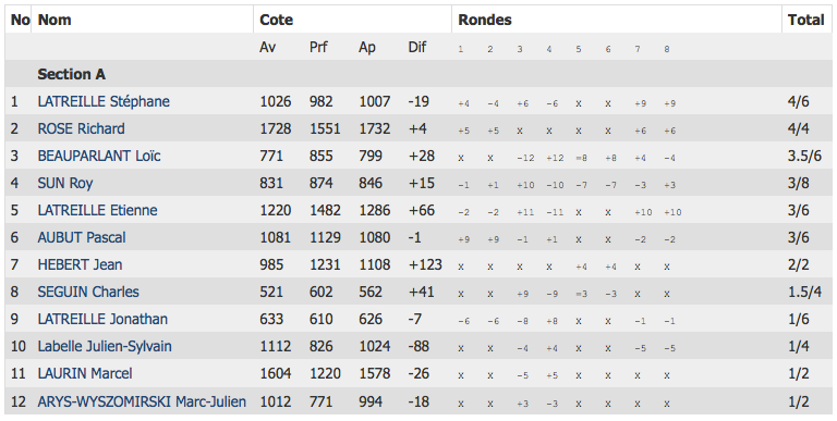 Un autre tournoi de terminé au CEA (Club d’échecs d’Aylmer). Écourté à 6 rondes en raison des