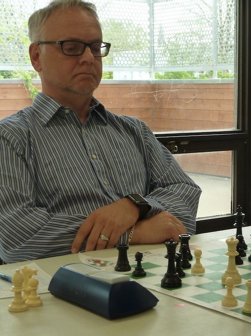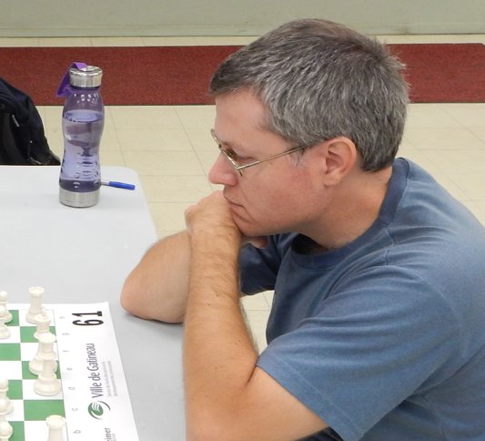 Le système suisse est de rigueur et dans la section A, Daniel Raymond a défait tour à tour les trois favoris Danilov, Jobin et Scantland, l’emporte haut la main et se mérite une place au prochain CFO. Il termine son parcours en affichant un gros 4.5 points en 5 parties. Le vétéran Joël Lecorre lui a livré tout un combat lors de la quatrième ronde ; mais peine perdue, les nerfs d’acier de Daniel n’ont pas flanchés, et cette superbe partie n’a fait aucun vainqueur. Joël termine au deuxième rang en compagnie du toujours dangereux Alex Danilov. Félicitations à Daniel !