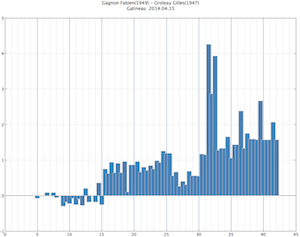 À l’aide de SCID (gratuit!) j’ai laissé rouler Stockfish DD à 20 secondes par coup pour obtenir les évaluations graphiques. Si on s’y fie, il est étonnant que les deux parties se soient soldées par des nulles.