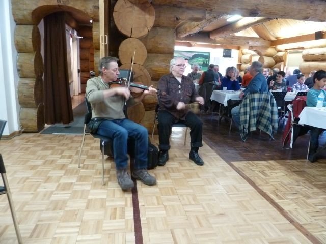 Au menu, un dîner traditionnel de circonstance, soupe aux pois, pâté à la viande, jambon, œufs dans du sirop d’érable, patates rissolées, oreilles de crisse, crêpes et dégustation de tire d’érable ont rassasié nos affamés invités. Il y avait même un violonneux qui par ses airs d’antan de reels et de rigodons a su créer l’agréable et amicale ambiance recherchée. En tout, ils étaient 70 adultes ou aînés et une cinquantaine de jeunes âgés pour la plupart entre 8 et 12 ans.