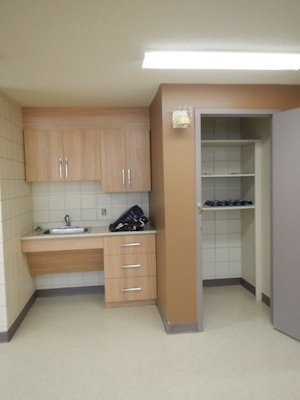 En arrivant sur les lieux, le nouveau toit métallique couleur feu redonne cet air de jeunesse à notre vieille bâtisse. En y accédant, on ne peut que constater une nette amélioration au hall d’entrée qui a retrouvé tout son charme: un beau plancher neuf au carrelage lustré, un éclairage nettement amélioré et de superbes toilettes toutes refaites. On peut aussi dorénavant utiliser comme salle d’analyse les deux pièces adjacentes côté-ouest.