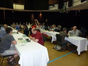 Nous avons eu droit dans la section Ouverte à une bataille de titans en dernière ronde puisque les deux favoris ont croisé le fer. Bator Sambuev n’avait besoin que d’une partie nulle qu’il concéda à Jean Hébert pour finir fin seul en première place, distançant ce dernier par un demi-point et le reléguant, seul, en deuxième place. Dans la section B, le jeune prodige de 12 ans de Montréal Ananda Saha termina ex aequo en tête avec Luc Villeneuve de Gatineau accumulant 4.5 points en faisant partie nulle avec ce dernier en cinquième ronde. Dans la section C, Ben Kellar d’Ottawa a gagné toutes ses parties avec une fiche immaculée de 5 en 5, pour s’emparer du premier prix. Il est suivi du Québécois Carl Montreuil de Wentworth-Nord , lui aussi invaincu et qui ne regrette certes pas sa visite en Outaouais. Il s’empare seul de la deuxième place. Un gros merci de sa part à son nécessaire bye de la première ronde qui s’avère une sage décision.