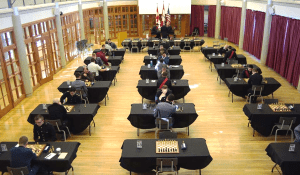 Le 23 janvier, 5 joueurs du Club d’échecs d’Aylmer ont participé au tournoi organisé dans le cadre de l’échange annuelle entre l’académie militaire West Point des États-Unis et le Collège militaire royal du Canada de Kingston. 43 joueurs étaient présents dont 10 des USA pour la 4e édition de ce tournoi qui, on l’espère, deviendra une tradition. En plus des 23 élèves de nos institutions militaires, des membres actifs et des vétérans des Forces armées canadiennes étaient invités à participer.