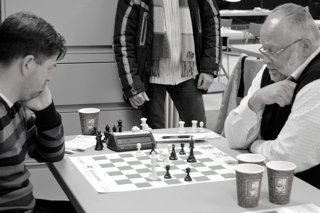 Serge Berthiaume – Raymond Labelle : La longue partie de la soirée. Raymond a eu de la difficulté à coordonner ses pièces. La pression exercée par Serge l’a amené dans une finale de cavaliers gagnante.