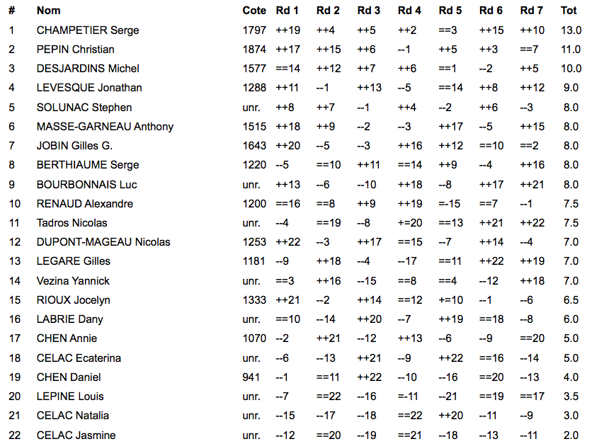 Si jamais il n’y a pas assez de joueurs pour former au moins un groupe rotation, nous procéderons à un suisse à deux sections (Open et moins de ???)