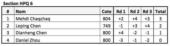 28 joueurs étaient présents pour le tournoi. Vous trouverez plus bas les résultats complets. Félicitations aux meilleurs de chaque section qui ont remporté une médaille aux couleurs d’H.P.Q.!