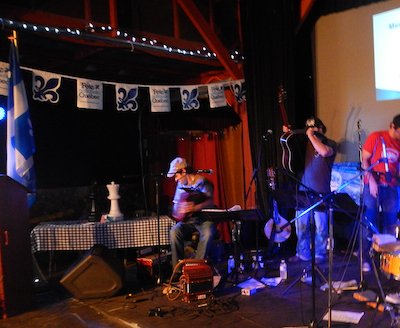 Au programme : la présence de l’excellent groupe québécois de musique traditionnelle originaire de St-Côme dans la région de Lanaudière La Giroflée accompagné du bien connu chansonnier aux airs de Félix Leclerc et animateur chevronné André Thériault. Si on ajoute, au menu du midi, les hotdogs gratuits grillés sur barbecue et comme dessert un super gâteau de la StJean au glaçage crémeux délectable et pour s’amuser toute la journée de nombreux jeux d’échecs sur place; on pouvait s’attendre à un bâtiment bondé
