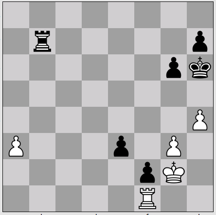 Depuis quelques coups déjà, les deux joueurs jouaient sur l’incrémentation. Dans la position ci-dessus, il n’avait qu’à pousser e2, et les Blancs auraient certainement abandonné. Mais, pour une raison inexplicable, Mario croyait fermement que e2 n’était pas un bon coup. En extrême pression de temps, il est difficile de modifier son état d’esprit (mindset). Et Mario perdit par le temps quelques coups plus tard alors que e2 était toujours gagnant.