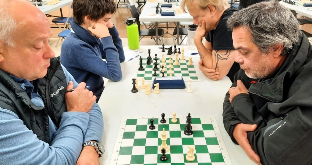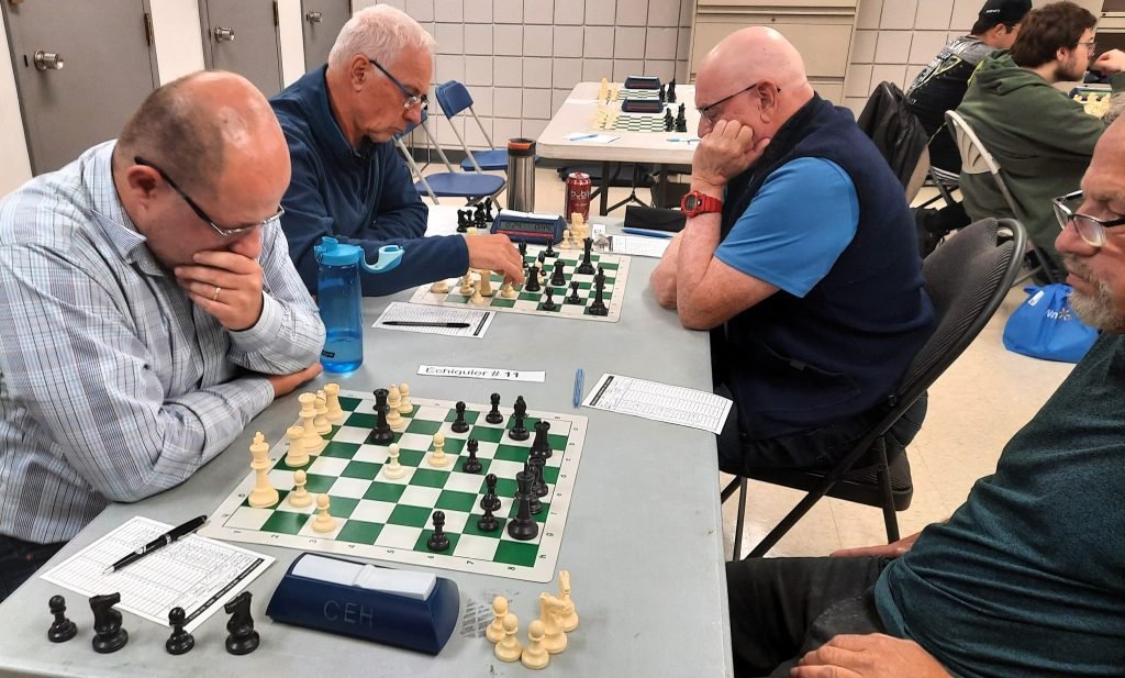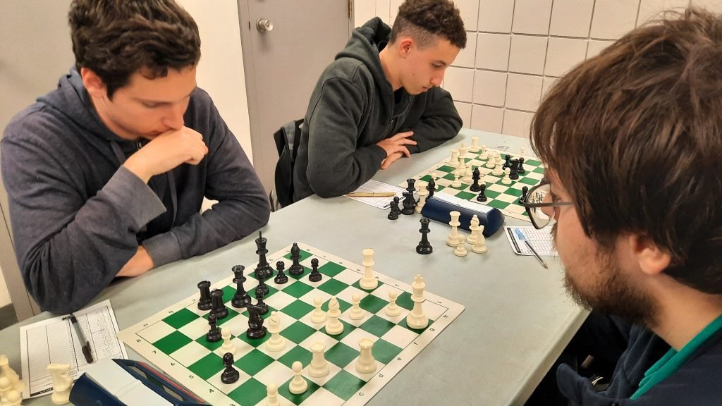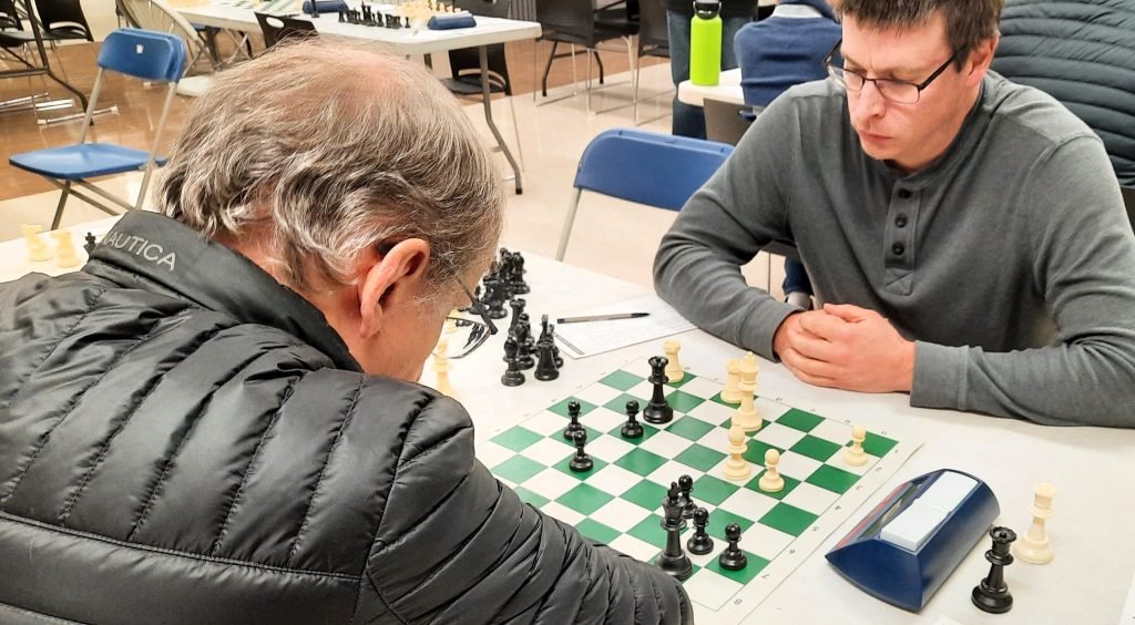 Les deux pros Michel Guimond et Patrick Scantland, qui faisaient un retour au jeu cette année, s’affrontaient sur les premiers échiquiers. ont fait un retour au jeu. Michel, qui n’a rien perdu de sa forme, a enregistré un gain contre le coriace Patrick.