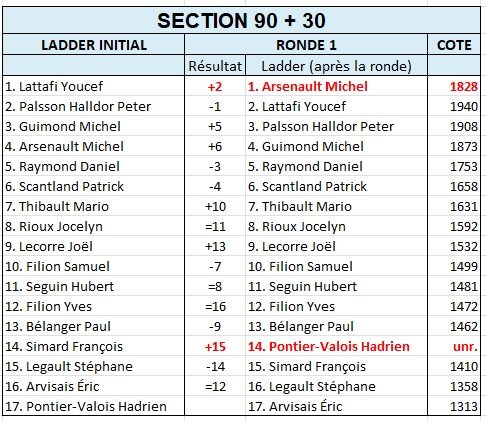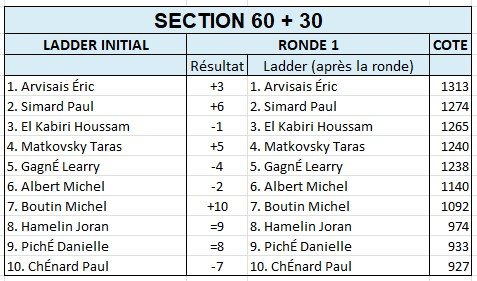 En battant notre talentueuse recrue Youcef Lattafi, le vétéran Michel Arsenault s’est emparé de la première place du Ladder. La partie la plus mouvementée fut celle entre Hubert Séguin et Jocelyn Rioux où les pièces n’avaient plus aucune valeur et revolaient de tout bord tout côté.