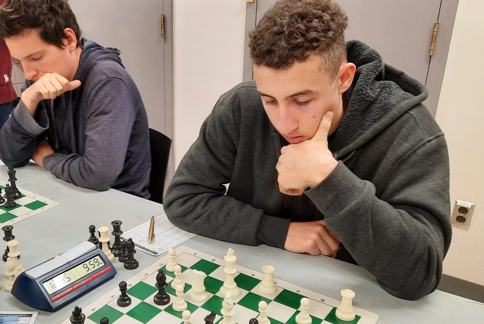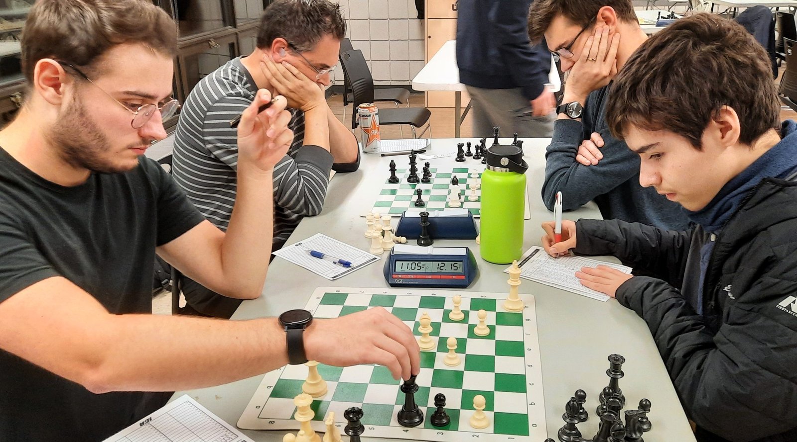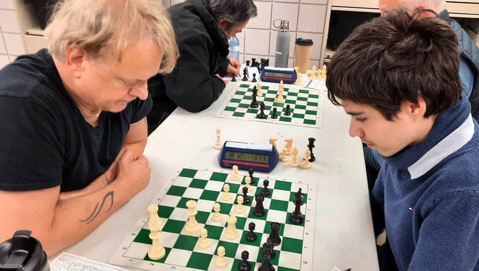 Les deux pros Michel Guimond et Patrick Scantland, qui faisaient un retour au jeu cette année, s’affrontaient sur les premiers échiquiers. ont fait un retour au jeu. Michel, qui n’a rien perdu de sa forme, a enregistré un gain contre le coriace Patrick.