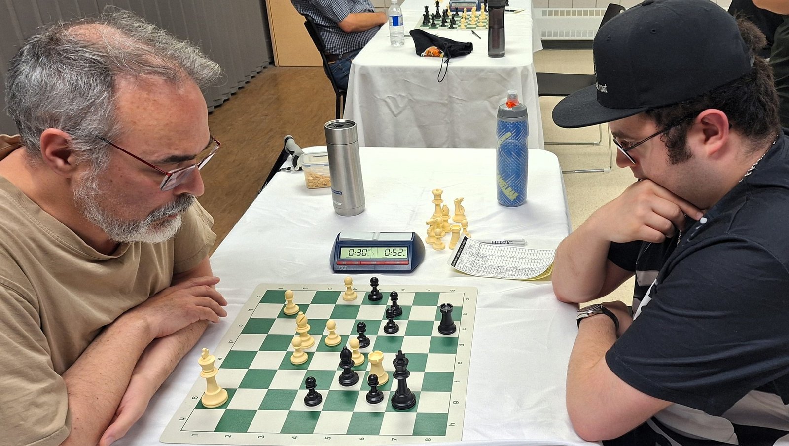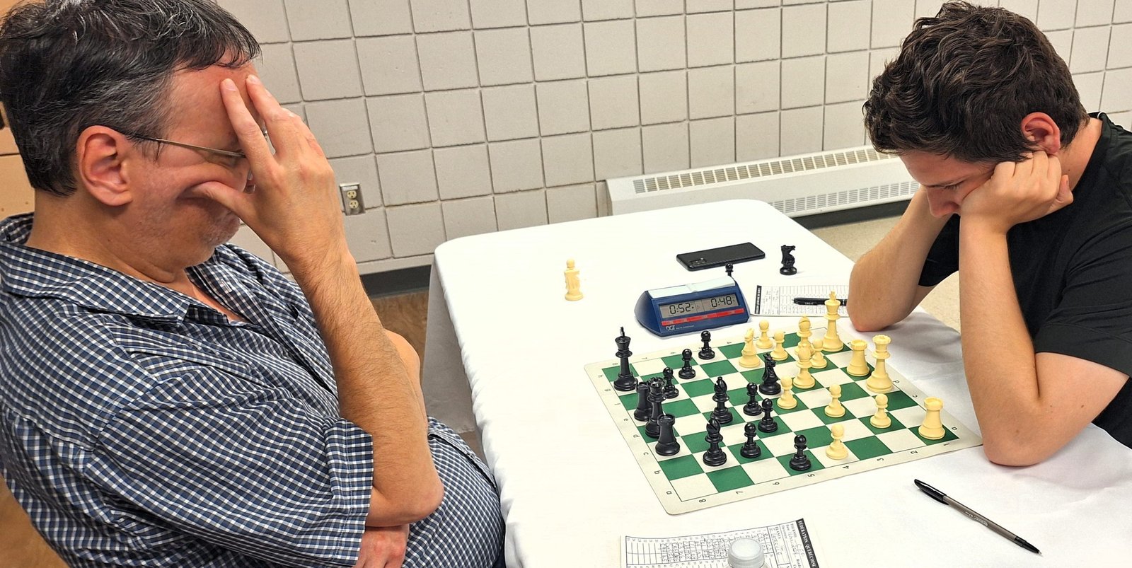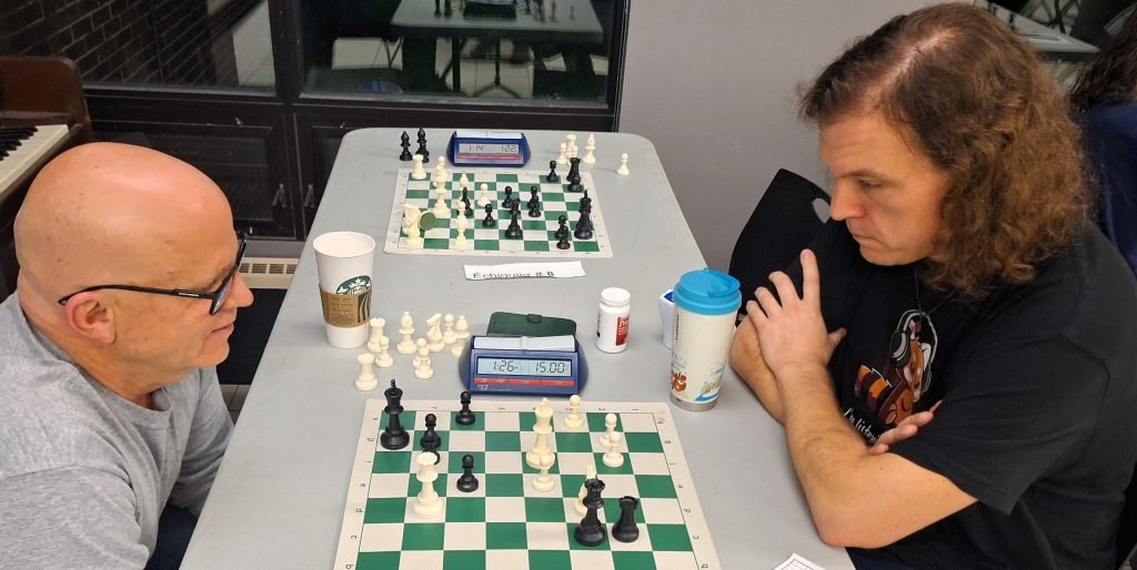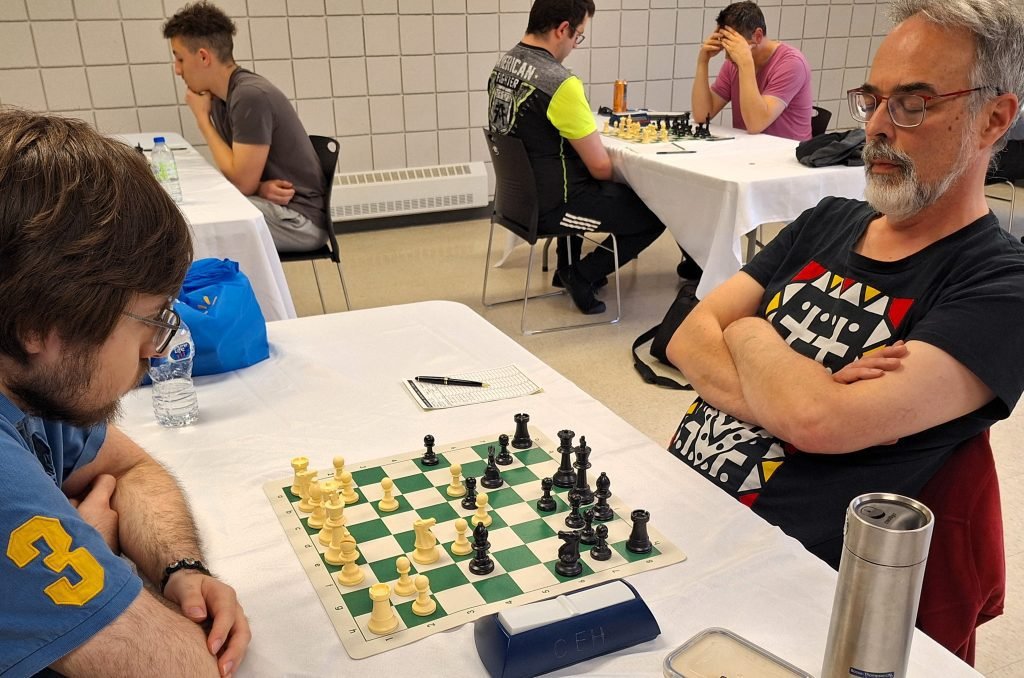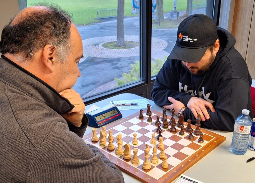 Le Maître Sébastien Azar remporte le CFO 2024. Enregistrant 6 victoires consécutives sans défaite, il s’accapare avec brio du titre de Champion de l’Outaouais, son 5ème au cours des 6 dernières années. La lutte demeure chaude pour les 2ème et 3ème places, alors qu’Étienne Latreille, Youcef Lattafi et Michel Desjardins se livrent une lutte sans merci. Deux questions viennent à l’esprit pour la dernière ronde mardi prochain: