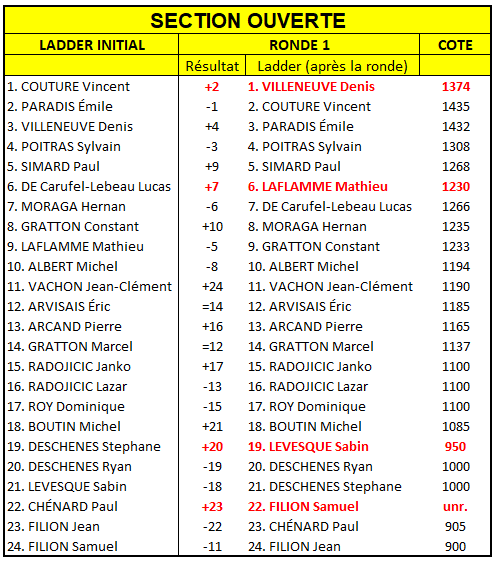 Il est possible que nous ajustions l’échelle, si le rang dans l’échelle avant la ronde 1 ne reflétait pas correctement la force du joueur.