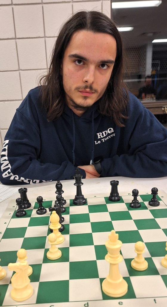 Taras Matkovsky vs Laurent Bergeron Colin : dans une autre partie espagnole, Laurent a été beaucoup trop généreux avec son adversaire. En effet, il a donné un pion central au 6e coup, une qualité au 13e coup, puis une pièce au 22e coup. Taras n’en demandait pas tant et il n’a eu aucun mal de mettre fin à cette partie.