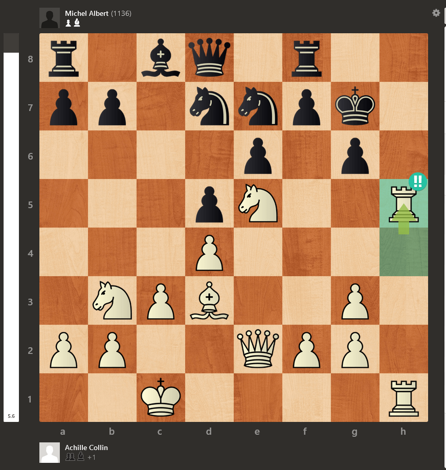 17.Dxf5! Dxf5 18.Cxg7+ Rf7 19.Cxf5 gagne une pièce et la partie plusieurs coups plus tard. Avec un pourcentage de précision de 93,2%, Michel a rappelé à tout le monde qu’il était un joueur très dangereux, peu importe sa forme échiquéenne.