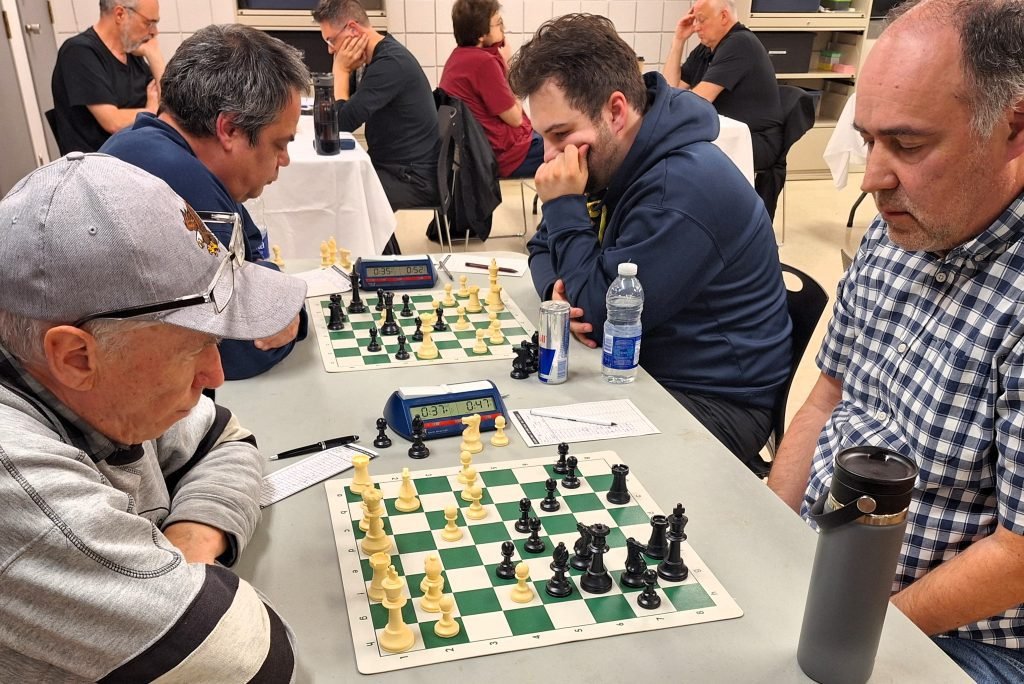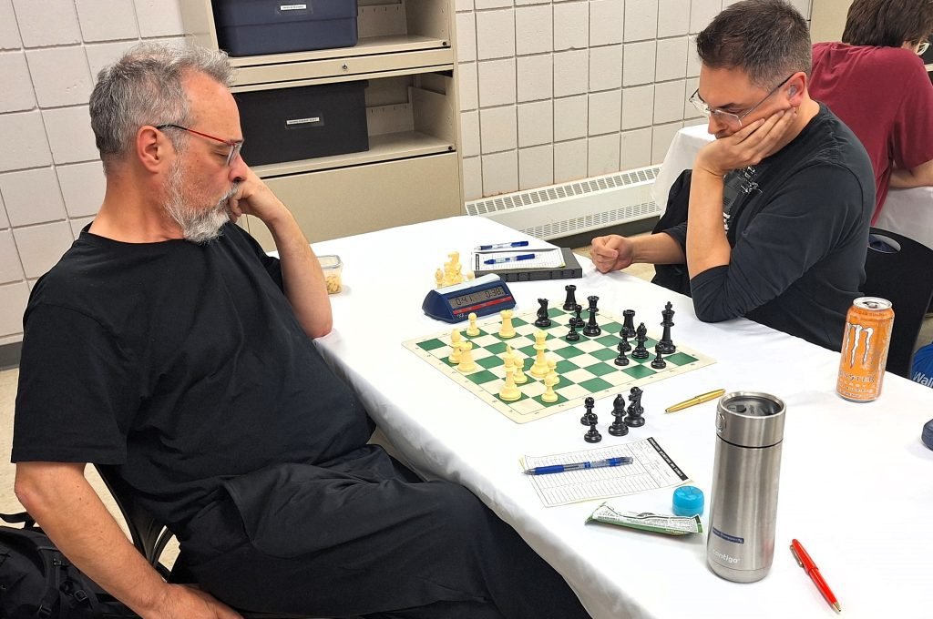 Joel Lecorre vs André Bastien : Quel duel que se sont livrés André et Joel! Pendant un long moment dans la partie, Joel a mis de la pression sur le roque de son adversaire. Il a même sacrifié une qualité pour augmenter la pression. André est un très bon défenseur et il a bien manœuvré pour solidifier sa forteresse. Il a réussi à ouvrir une colonne et il a pu obtenir du contre-jeu. J’ai remarqué qu’il y a eu plusieurs erreurs de part et d’autre en fin de partie. Clairement, la fatigue a été un enjeu et ça a plus affecté mon ami Joel. Tout de même, il faut souligner le beau retour d’André qui vengeait sa plus récente défaite.
