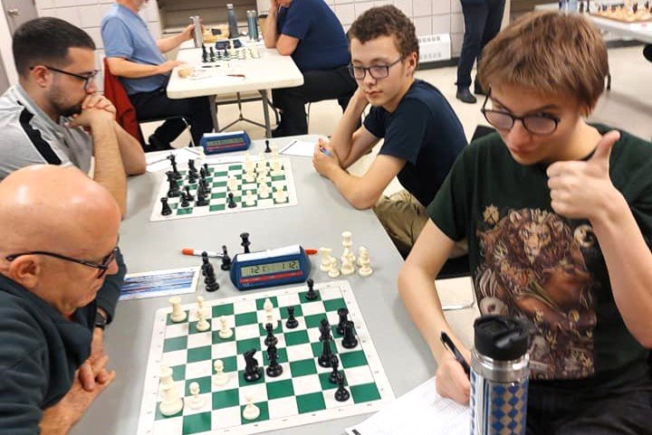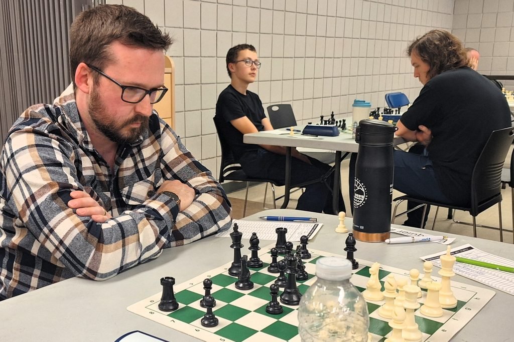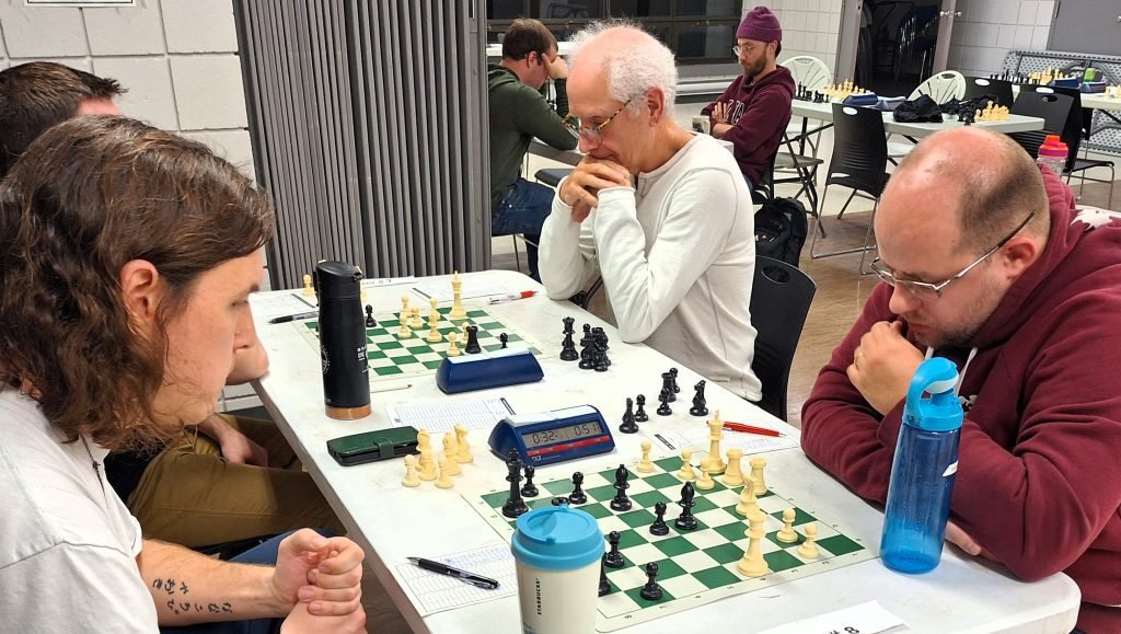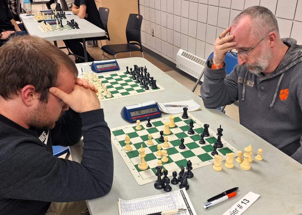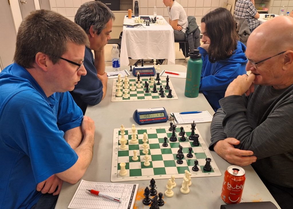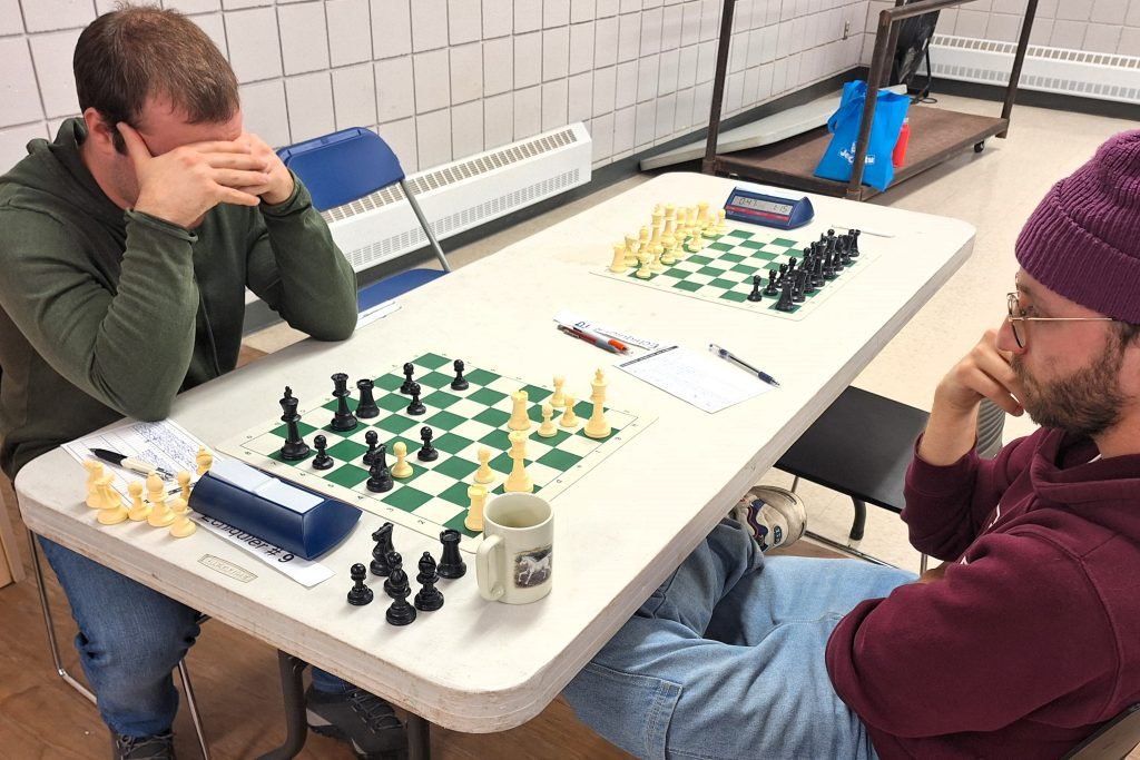 John O’Connor vs Loic Lemieux : John a eu une ouverture difficile puisqu’il a perdu un pion après seulement quelques coups. Pourtant, John aurait pratiquement pu mettre le match hors de portée de main en gagnant une pièce et une qualité avec 18.Cxd6! Après avoir manqué ce coup, Loic a été sans pitié et a gagné assez rapidement.