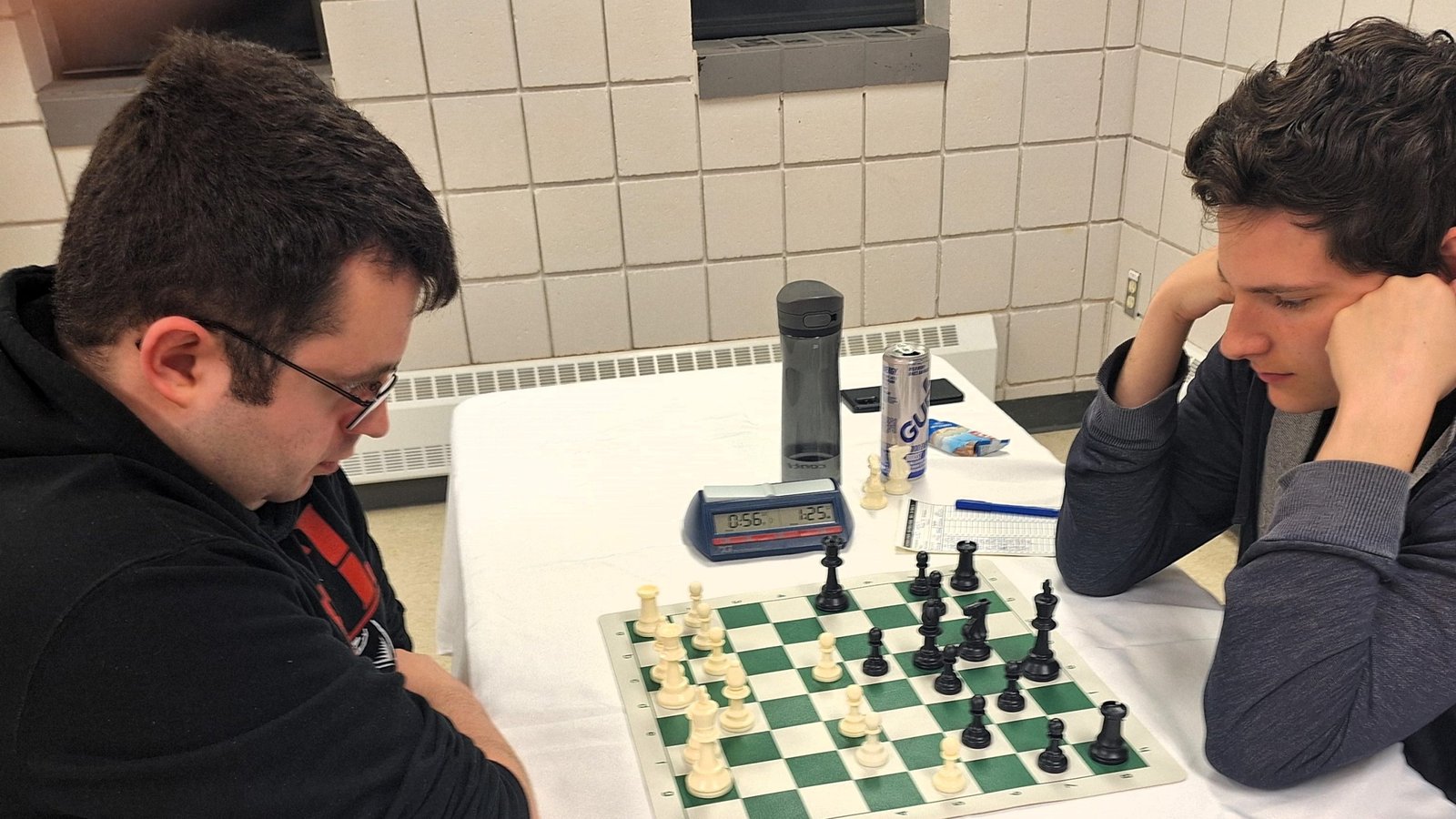 John O’Connor vs Loic Lemieux : John a eu une ouverture difficile puisqu’il a perdu un pion après seulement quelques coups. Pourtant, John aurait pratiquement pu mettre le match hors de portée de main en gagnant une pièce et une qualité avec 18.Cxd6! Après avoir manqué ce coup, Loic a été sans pitié et a gagné assez rapidement.