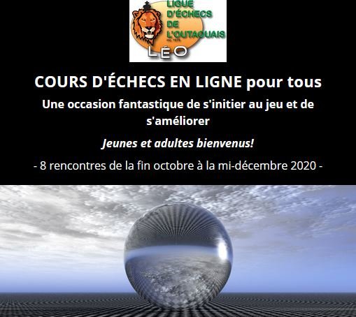 D’ici la reprise des activités normales, la LEO vous invite à vous joindre à ces champions lors de ses tournois hebdomadaires, qui ont lieu tous les mardi soirs à 19h, sur chess.com. Il suffit d’être résident de l’Outaouais ou d’Ottawa et de demander l’admission au club du cercle d’échecs de Hull sur chess.com. Toutes les informations ici: https://preview.mailerlite.com/o1d7r9.